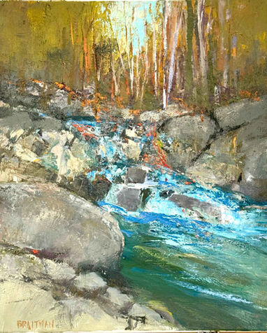 Andy Braitman is an artist of national stature. His work has been featured in galleries and in one-man and group shows in Santa Fe, Chicago, Atlanta, Millburn, N.J., Washington, D.C., Noorbeek, Holland, and Rio de Janiero and Curitba, Brazil. He has exhibited at Jerald Melberg, Hodges Taylor, Shain Fine Art and now the Redsky Gallery in Charlotte, and in many other galleries throughout North Carolina. He was chosen by Nancy Reagan as one of America's Leading Artists, along with other notable artists such as Frank Stella and Andrew Wyeth, and asked to contribute a decorated Easter egg to the White House. The egg is now on display in the Smithsonian Institute. He was selected to participate in the prestigious Maryland Biennial Juried Exhibition at the Charles Museum of Art in Baltimore. Andy was born in Casper, Wyoming and moved to Maryland during his high school years. He attended the University of Maryland, and it was there that he discovered a true passion for art. He took every drawing and art class offered by the university, and graduated with a bachelor's degree in fine arts with minors in physics and art history. He studied physics to learn about light and took anatomy and physiology courses in the nursing school to learn about the human body. He won the Warton Award Grant for Outstanding Senior Artist in 1972 and in 1974. Because Andy didn't change his major to art until the end of his sophomore year, he was a senior for three years. His next task was to determine if he could make a living to support himself while he pursued his dream of being an artist. He worked mixing colors in a paint store and as an electrician's apprentice. At times he would work for 6 months in a 'real job' to make enough money to paint for 6 months. For approximately 10 years, Andy supported himself solely through the sale of his paintings. Andy has been an Artist in Residence for Prince Georges County, Maryland and for Edgecombe and Mitchell Counties in N.C. In those roles he has been guest lecturer at area colleges, conducted workshops, judged art competitions, and participated in public art projects. Braitman's most recent work focuses on the relationship of texture and color combined with lost edges that speak more to his earlier abstraction than they do to his later reality. His recent trip to Santa Fe inspired even more abstraction in his work however retaining the color he has developed through his landscape paintings.